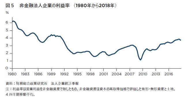 アメリカでは、そもそもr<gなのかという問題についても論争があるが、日本の政策金利(コールレート)は最初の図3のように、この20年ほぼ一貫してゼロからマイナスだった。しかし図5のように企業の利益率は最近では約3%で、名目成長率の平均0.6%より高く、リスク資産ではr>gとなっている。
