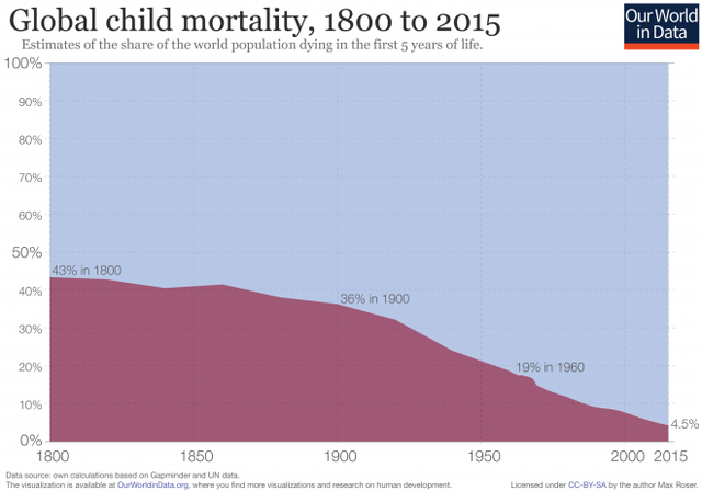 乳幼児死亡率(5歳以下)は43%から4.5%に下がった。